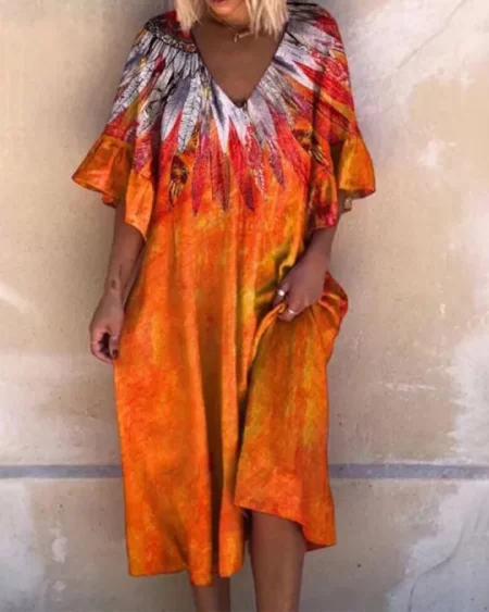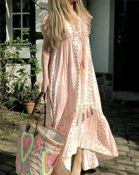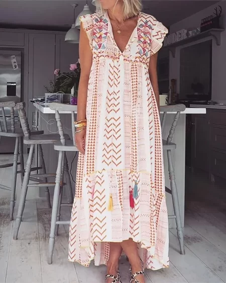 Be the first to review “Bohemian Geometric Print Flared Sleeve Casual Maxi Dress” Cancel reply