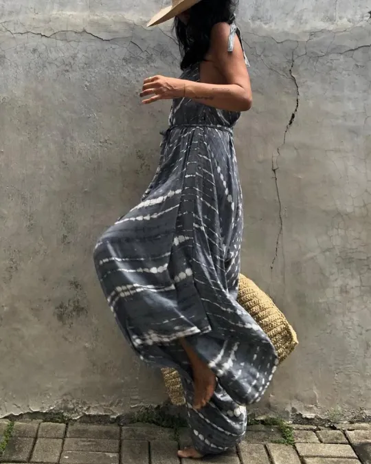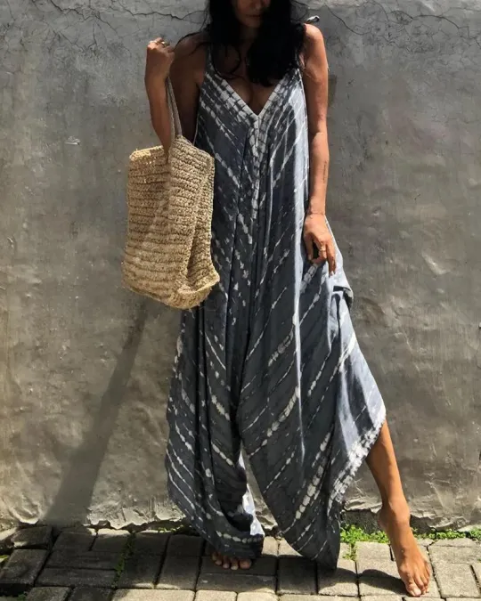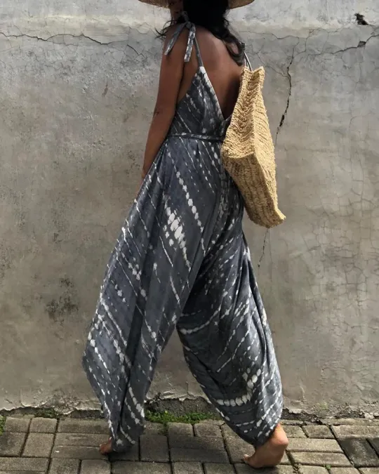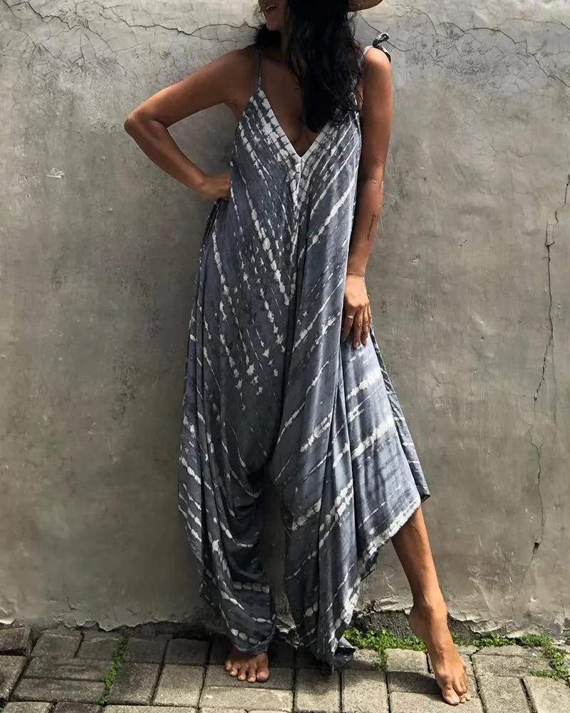 Tie-Dye Print Irregular Hem Design Casual Jumpsuit